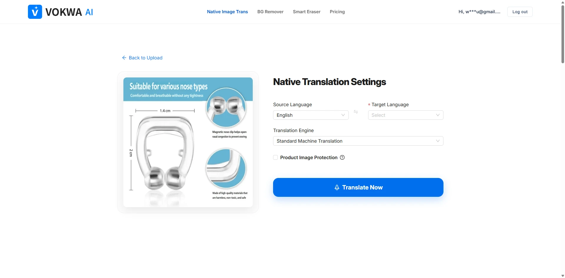 Visit the VOKWA AI official website and select the Image Translation feature.